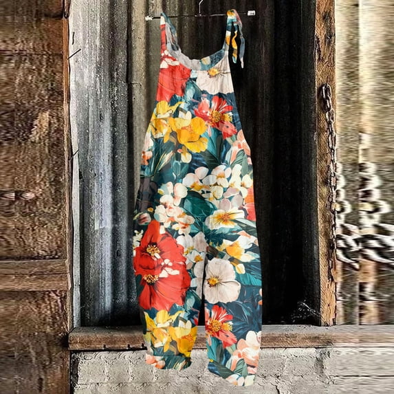 2026 Spring Summer Women's Boho Floral Overalls Spaghetti Strap Wide ...