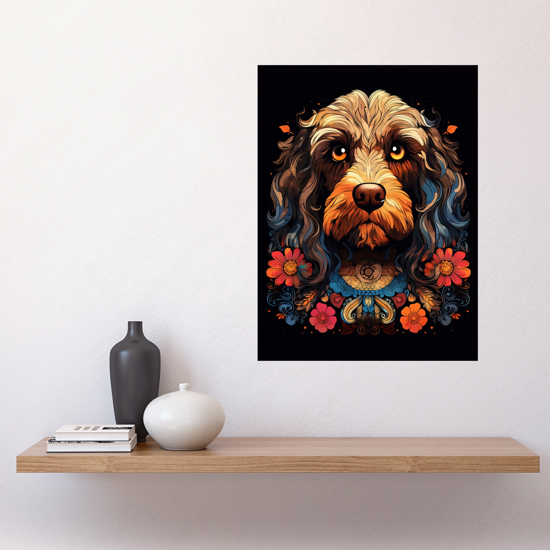 Cockapoo Dog with Flower Patterns Art Nouveau Artwork Orange Blue ...