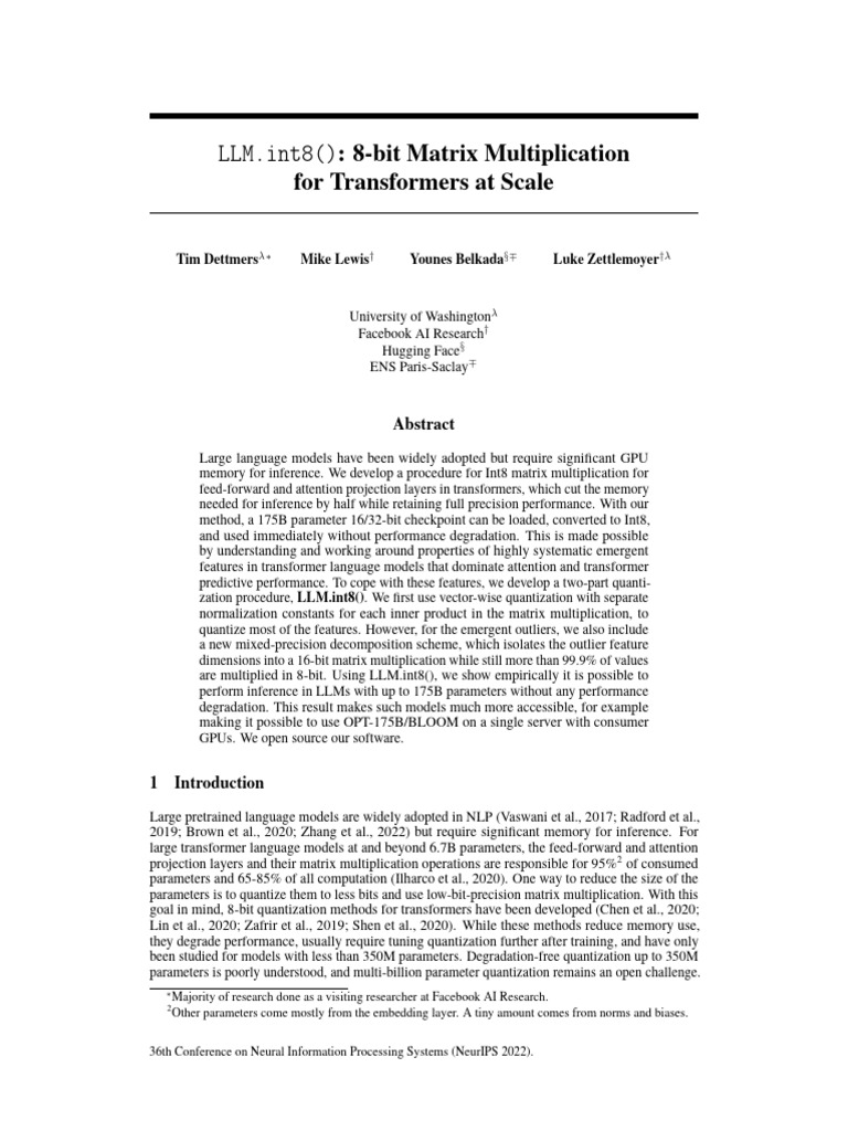 Paper page - LLM.int8(): 8-bit Matrix Multiplication for Transformers ...