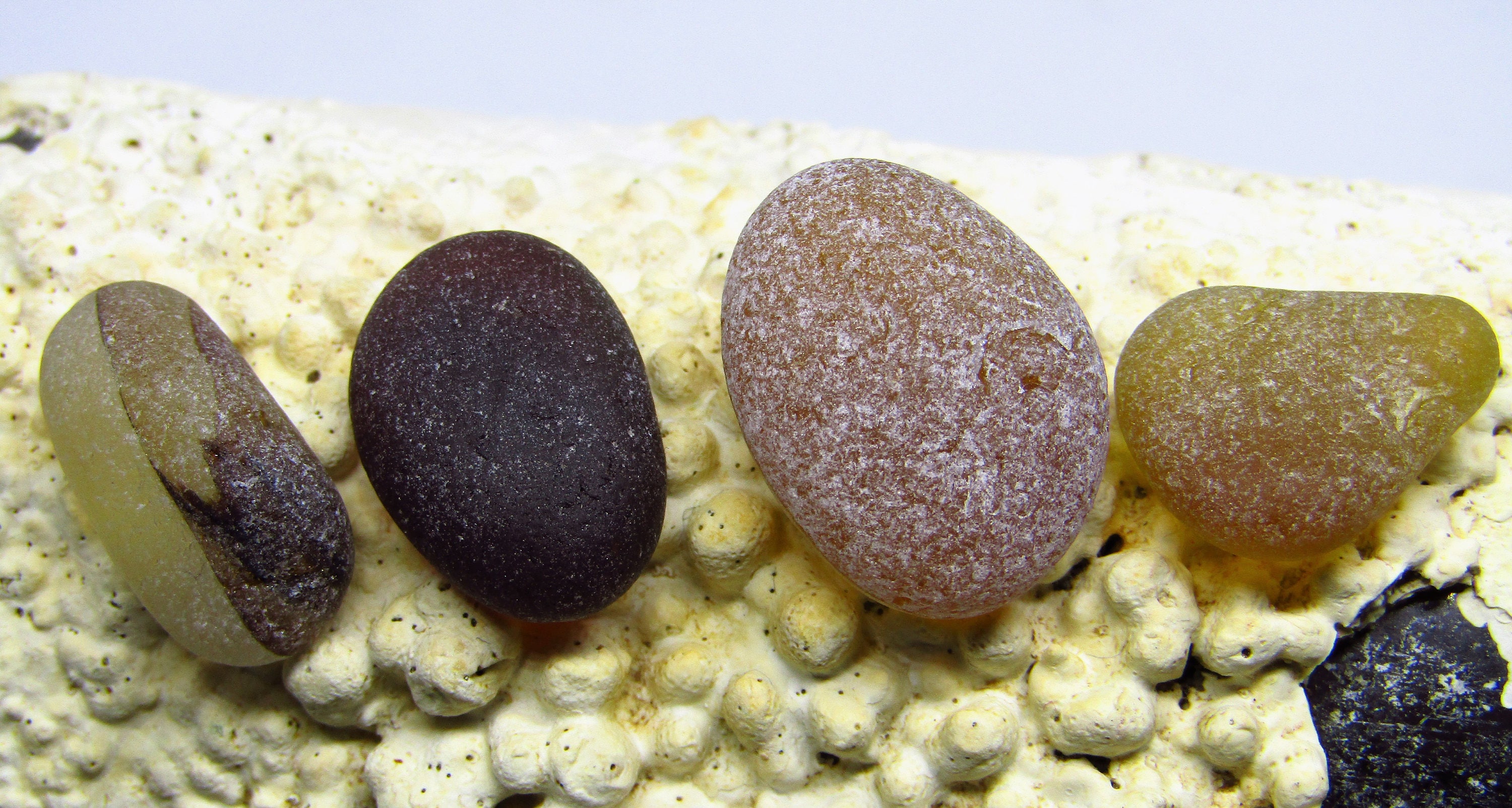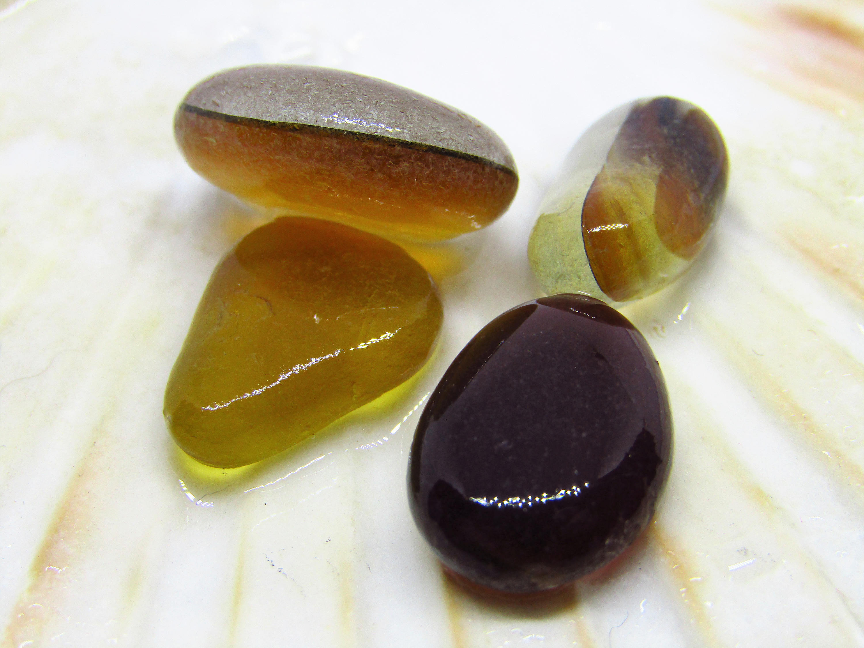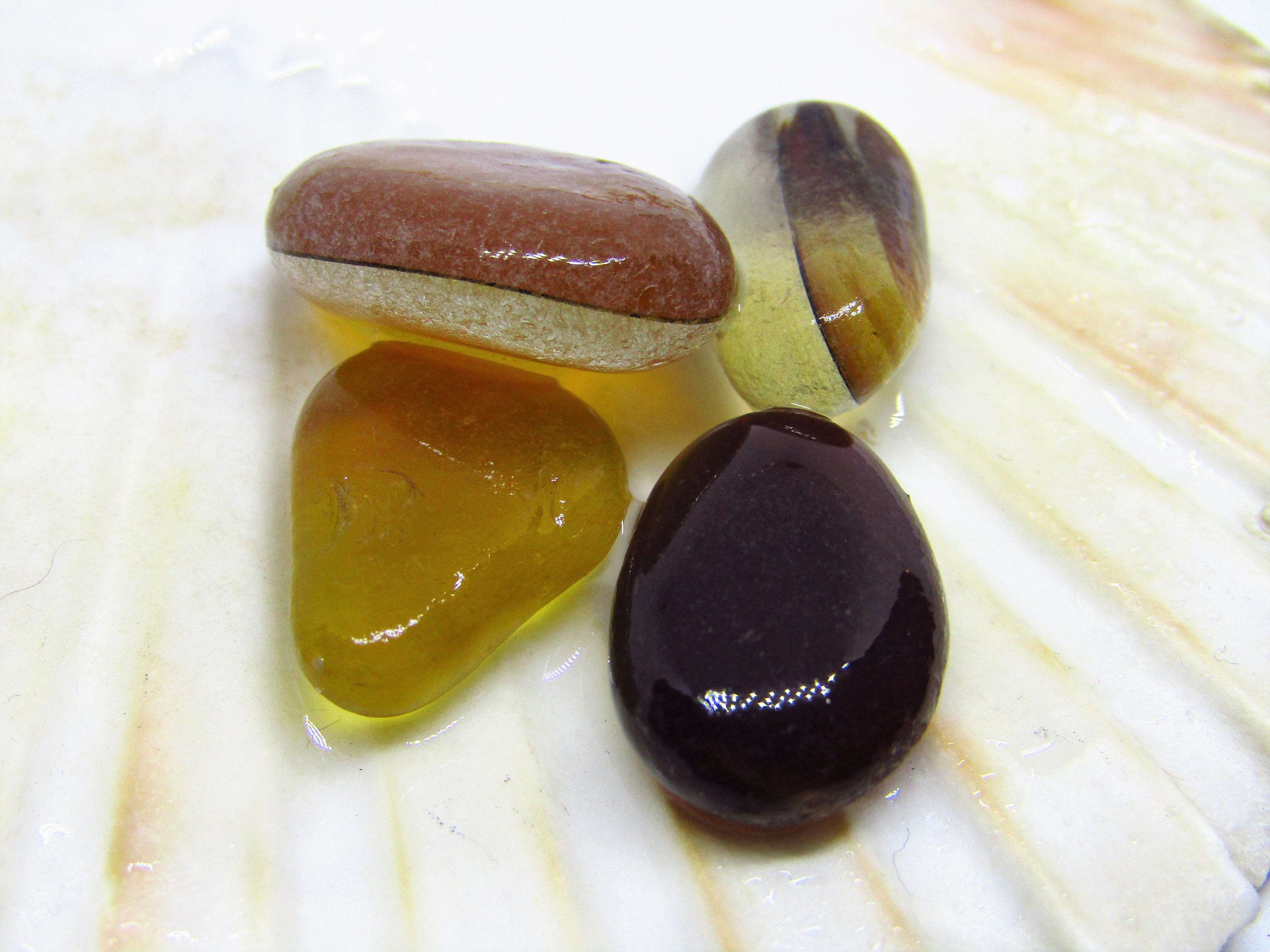 4 Amber/ Brown Bicoloured/multies/fish Eye Seaham Sea Glass, Jewellery ...
