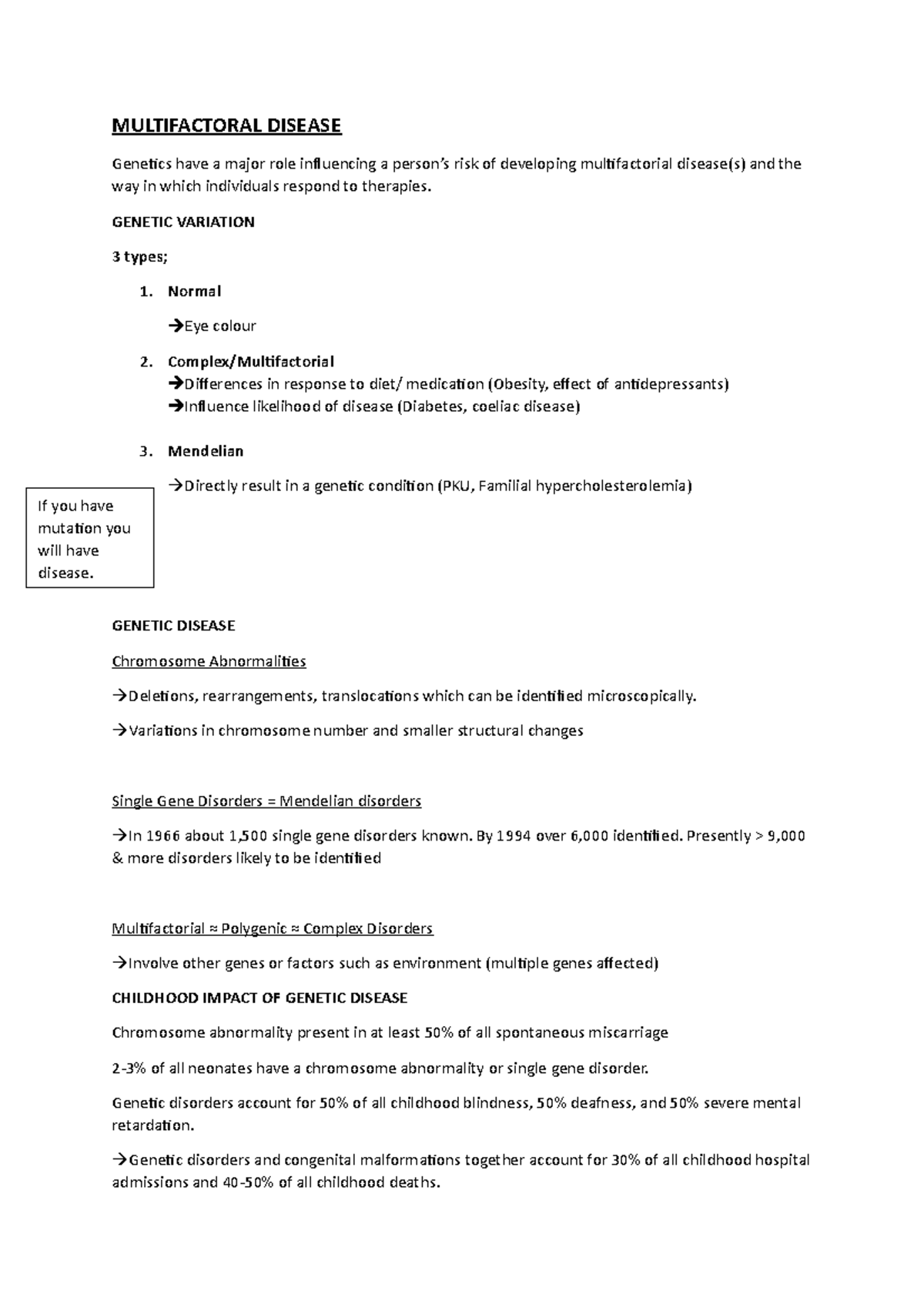 Multifactorial Human Diseases - Studocu