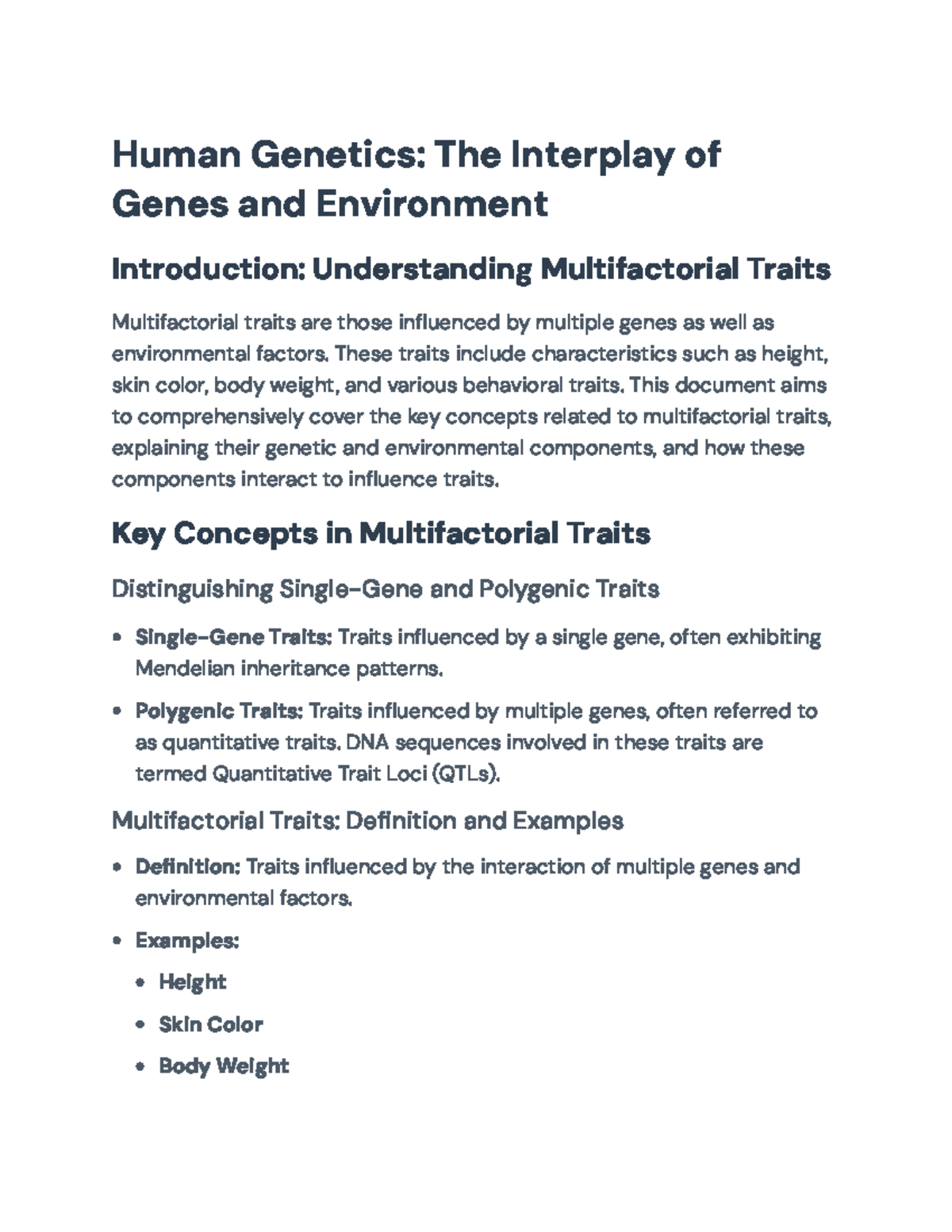 Multifactorial Traits: Genetic and Environmental Influences Overview ...