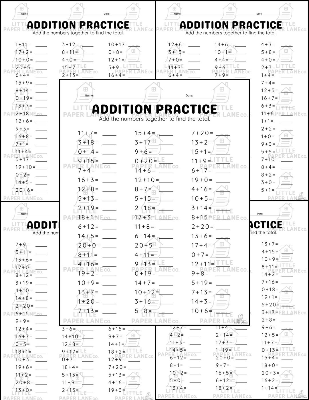 Addition Practice Worksheets: 5-page Horizontal Math Problems (PDF ...