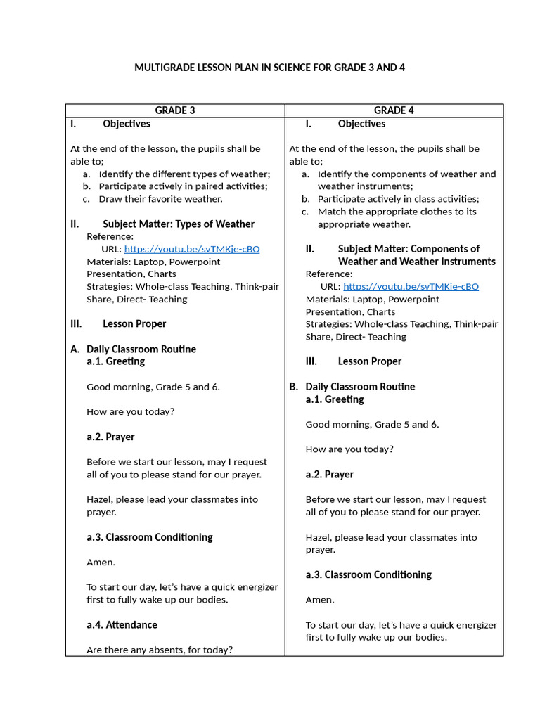 MULTIGRADE LESSON PLAN (SCIENCE 3 AND 4) - YouTube