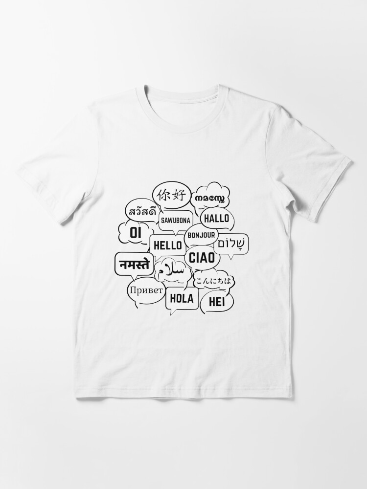 Hello in different languages Funny Creative Graphic T-Shirt Greetings ...