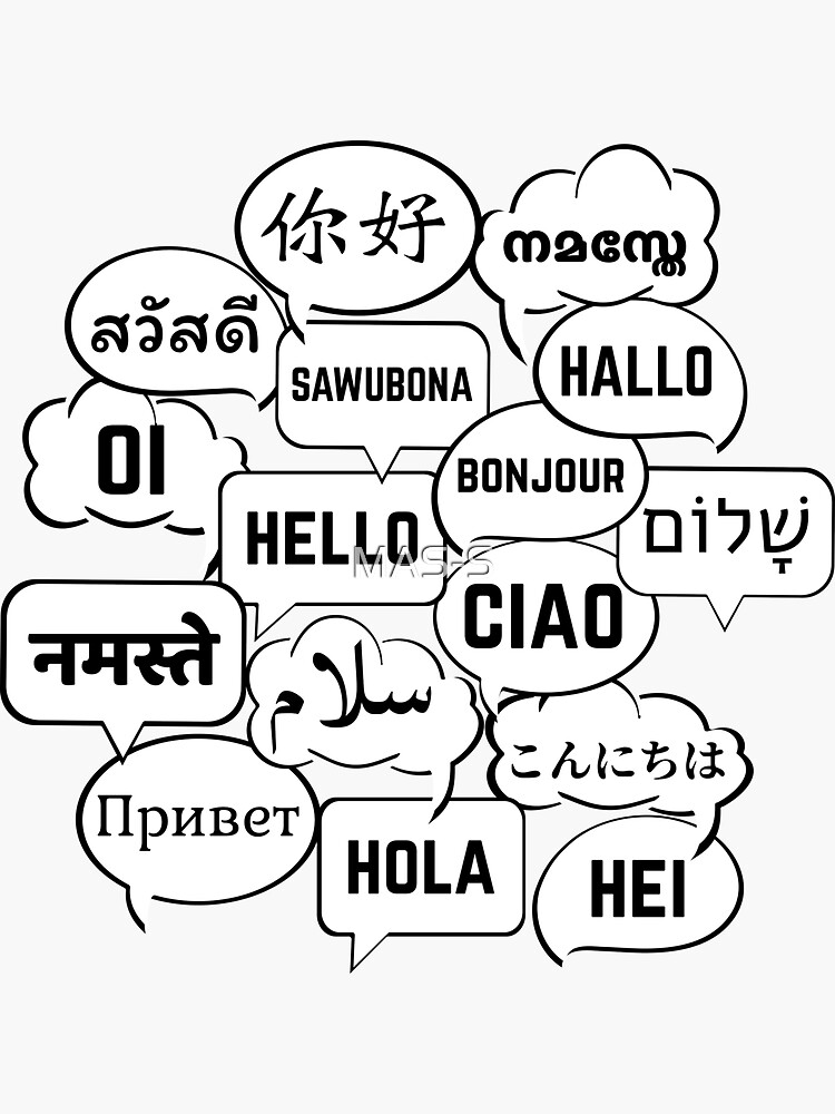 "hello multiple languages" Sticker for Sale by Silveiradesign | Redbubble
