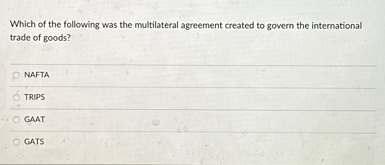Solved Which of the following was the multilateral agreement | Chegg.com