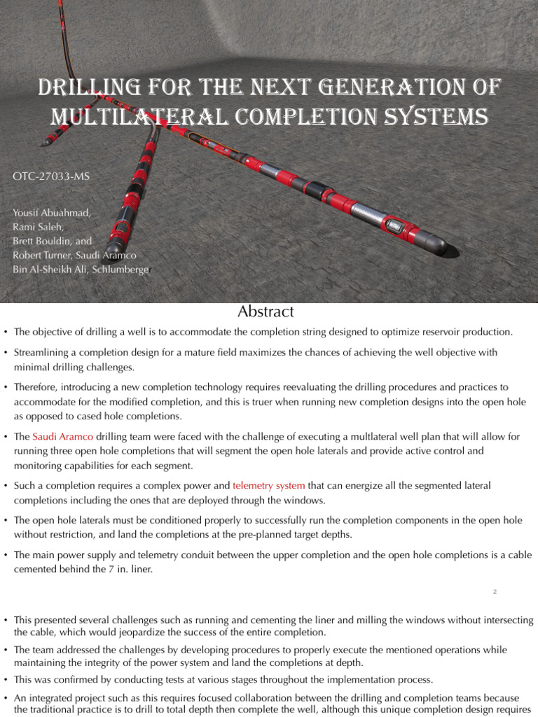 Multilateral completions | Society of Petroleum Engineers (SPE) | OnePetro