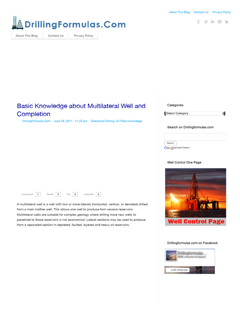Drilling and Completion of Multilateral Wells ~ Petro Pedia
