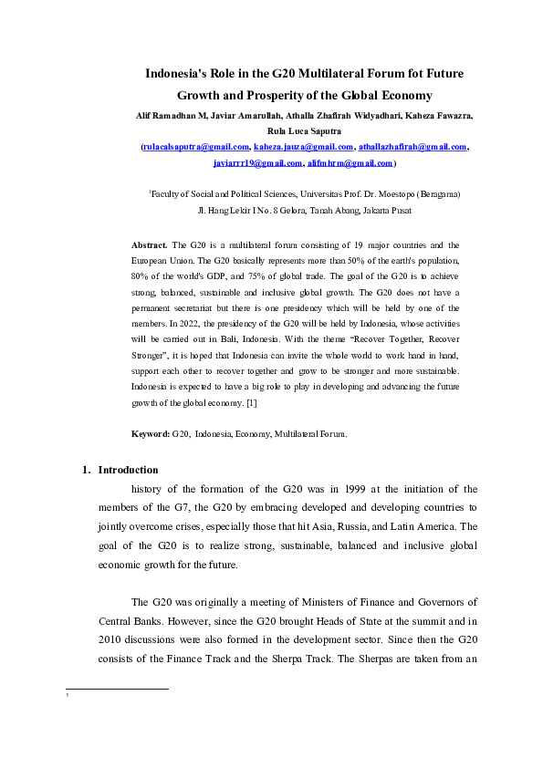(DOC) Indonesia's Role in the G20 Multilateral Forum for Future Growth ...