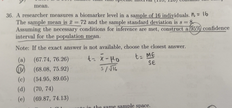 Solved: mean. 36. A researcher measures a biomarker level in a sample ...