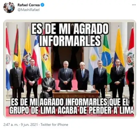 Ecuador: Rafael Correa publicado un meme burlándose del Grupo Lima tras ...