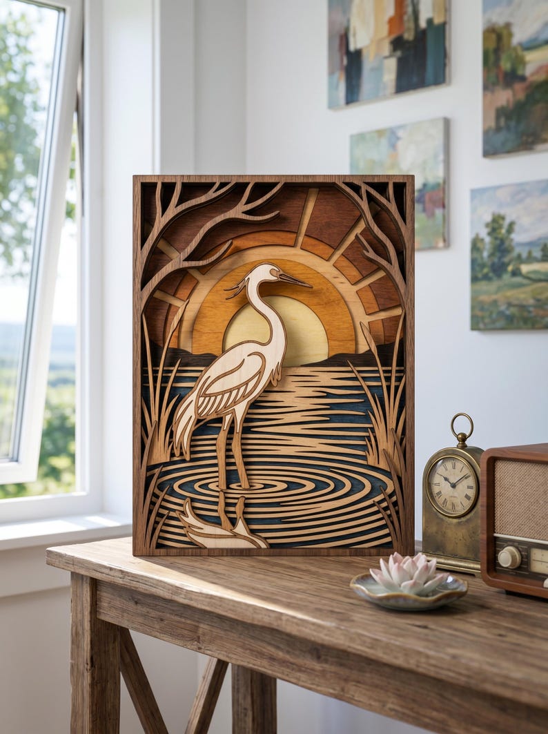 NB160 Heron Lake Sunset Layered SVG | 10 Layered Laser Cut File | Bird ...
