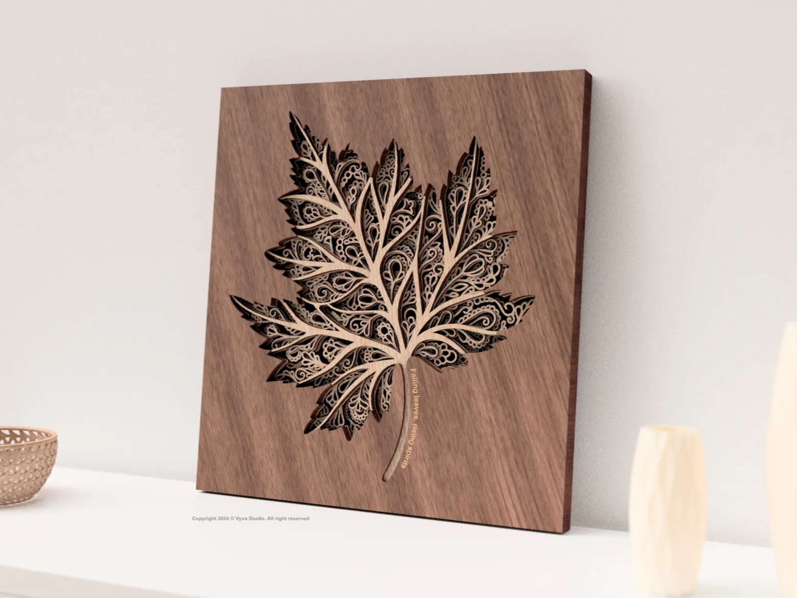 Laser Cut Multilayer Maple Leaf Wall Art with Intricate Floral Pattern ...
