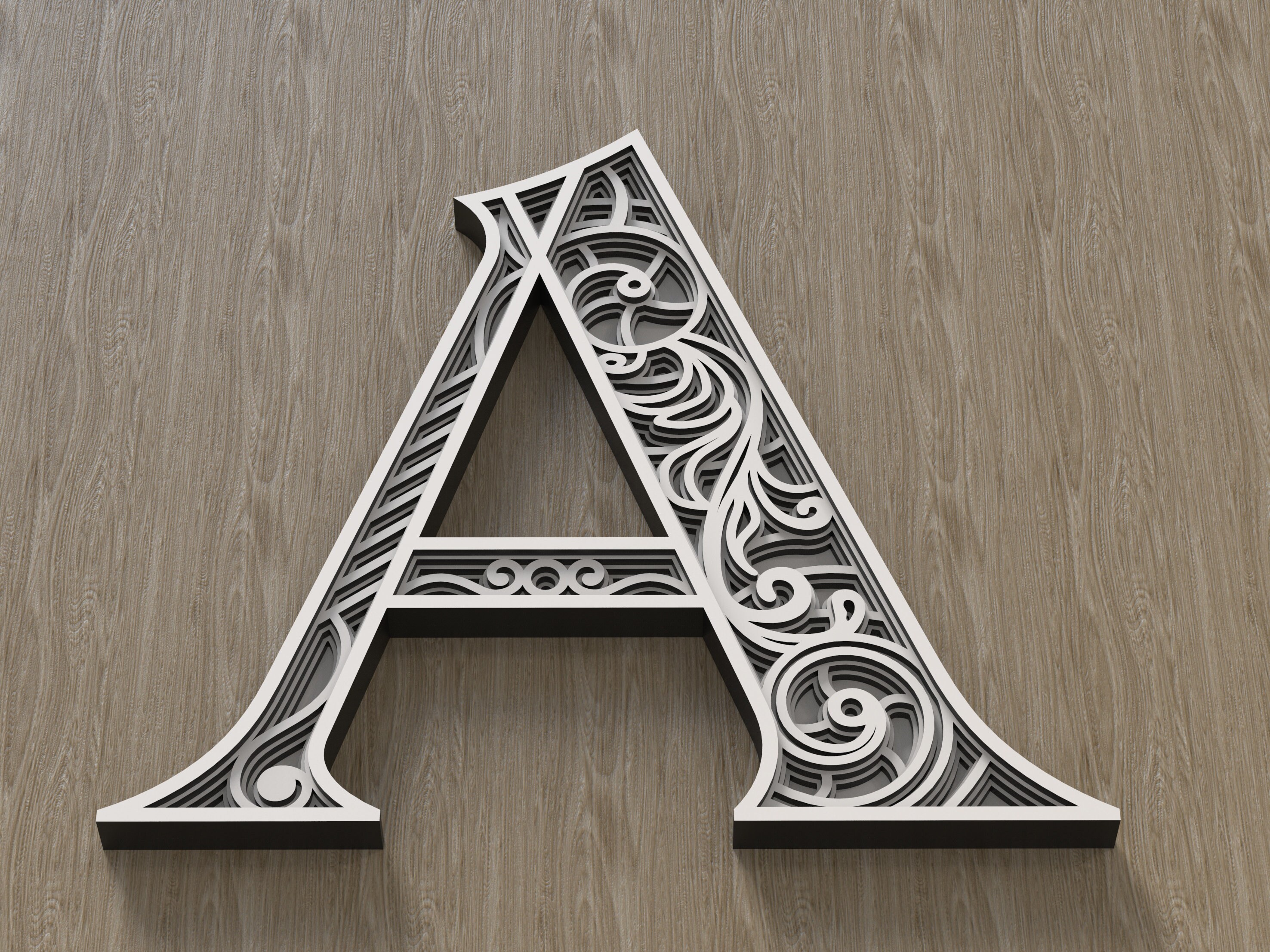 Layered Letter A, Multilayer Monogram, 3D Alphabet SVG, Files for Laser ...