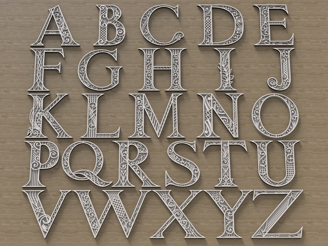Split Floral Monogram Alphabet Letters laser cut svg file
