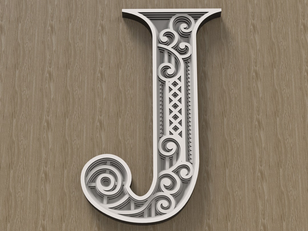 Layered Letter J, Multilayer Monogram, 3D Alphabet SVG, Files for Laser ...