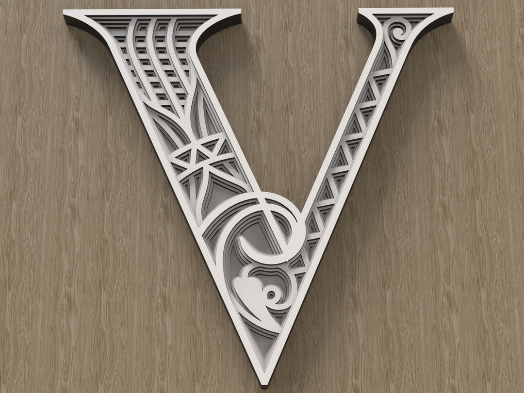 Layered Letter V, Multilayer Monogram, 3D Alphabet SVG, Files for Laser ...