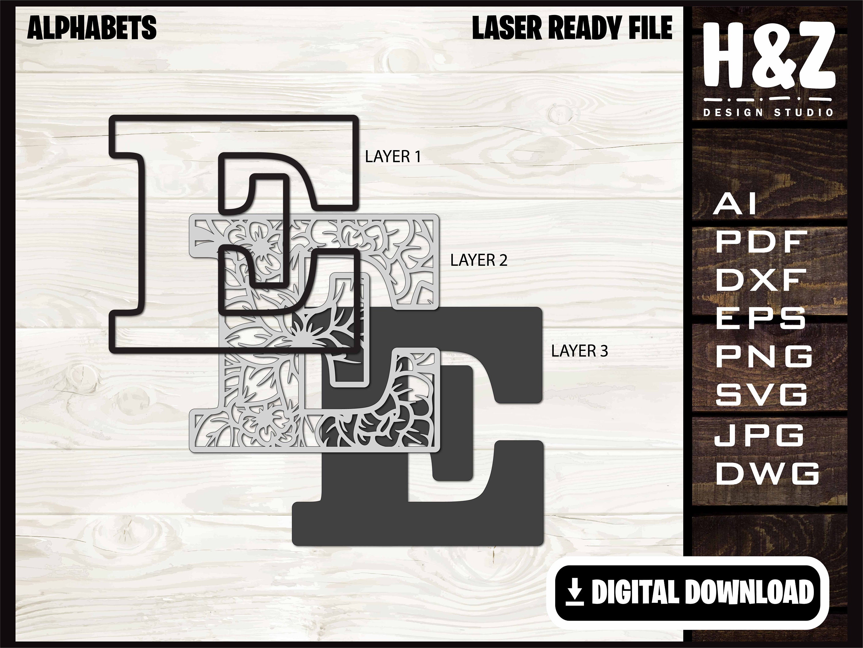 Multi Layer Monogram Alphabet SVG, DXF, PNG, Multi Layer Monogram Frame ...
