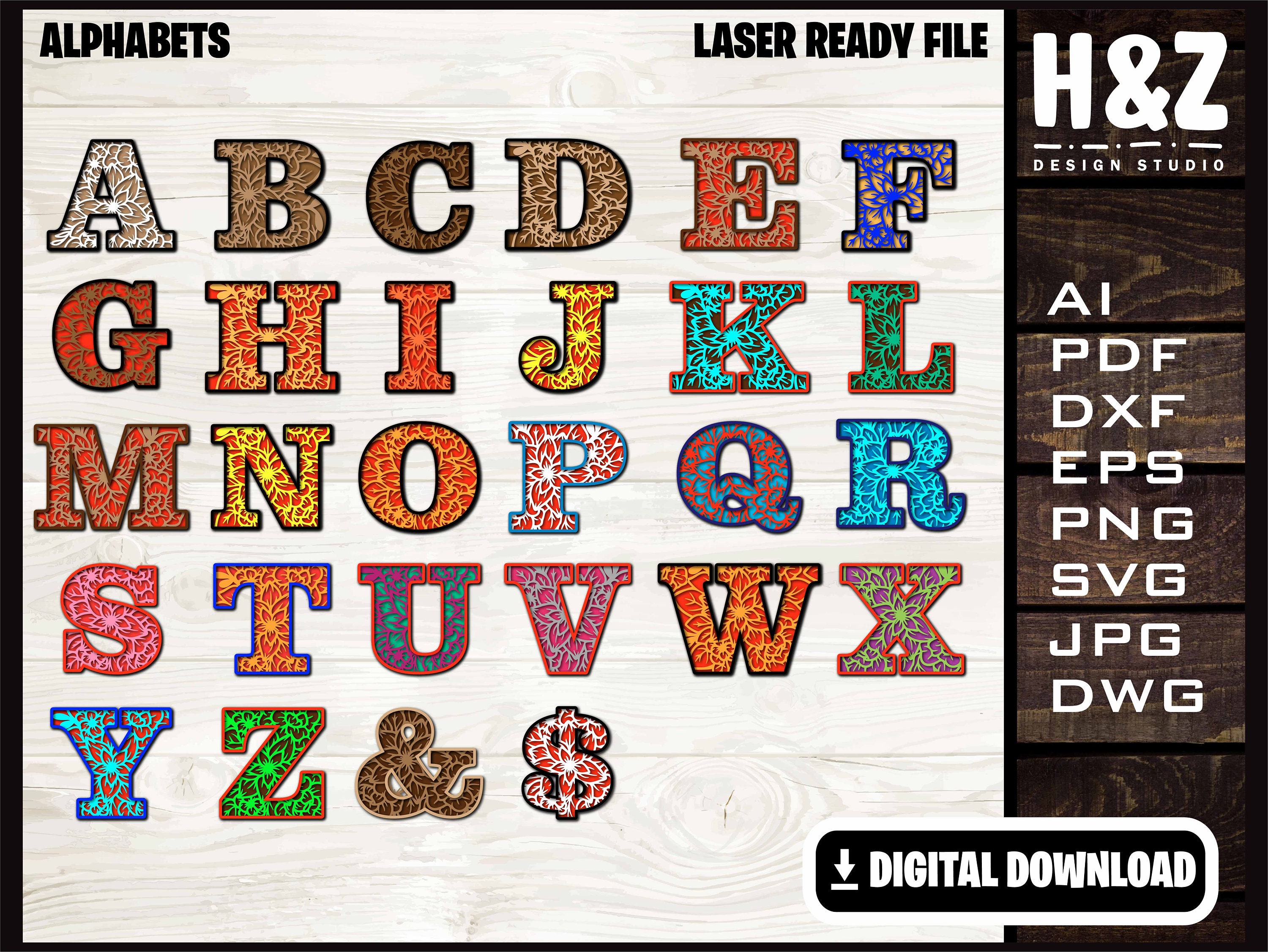 A Z Bundle 26 Letters Layered Floral Alphabet Multilayer Monogram, SVG ...