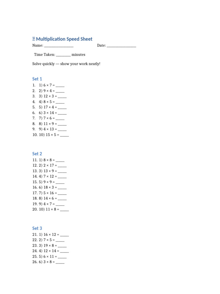 Multiplication Speed Drill Worksheet - Improve Your Math Skills Quickly!