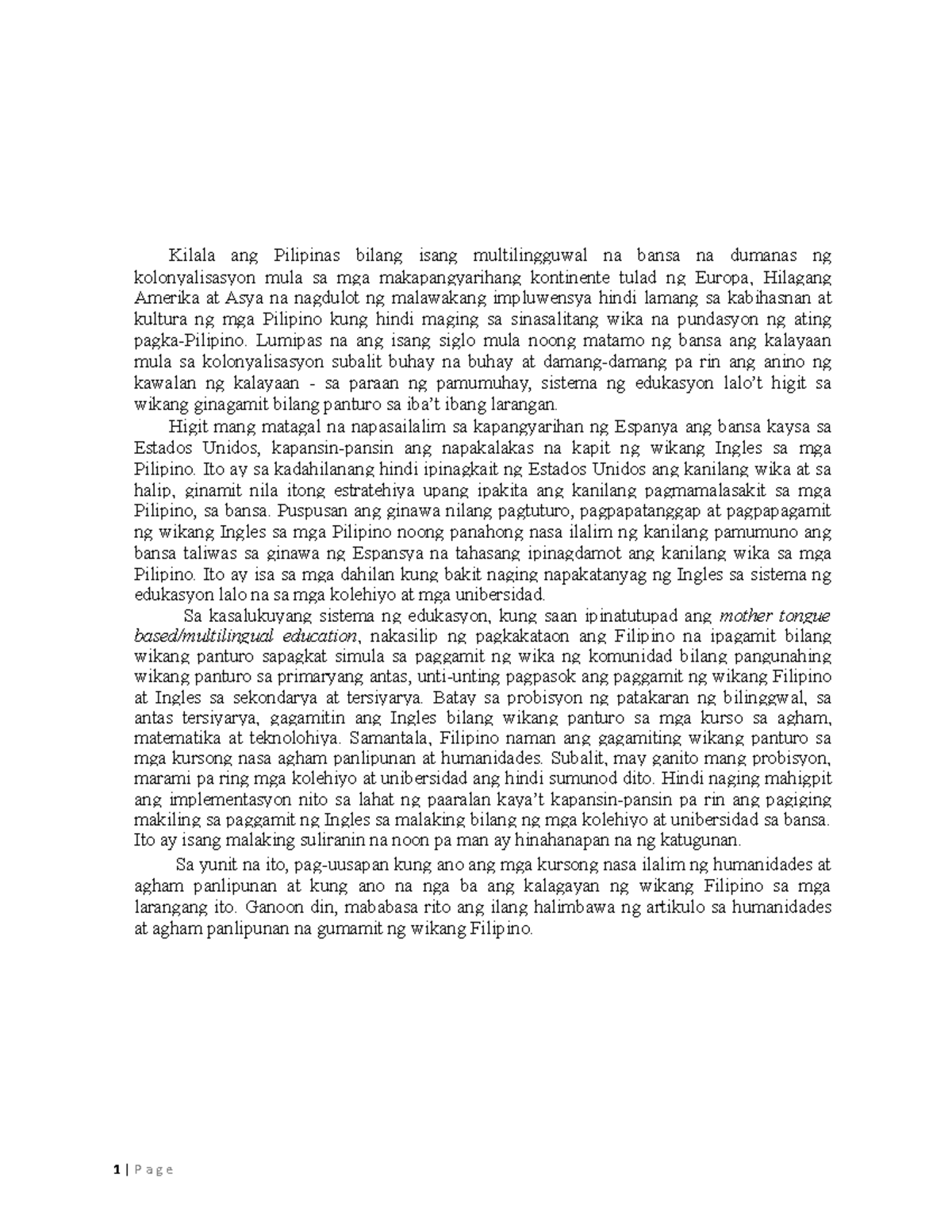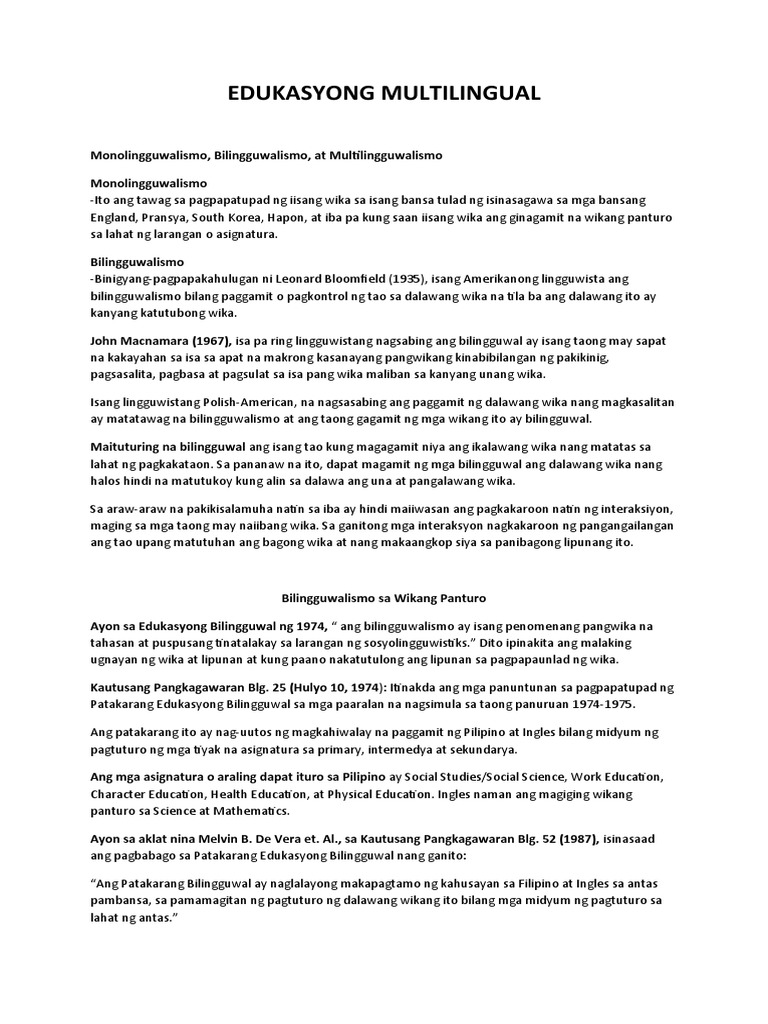 Ano Ang Kahalagahan NG Multilingguwalismo Sa Edukasyon? | PDF