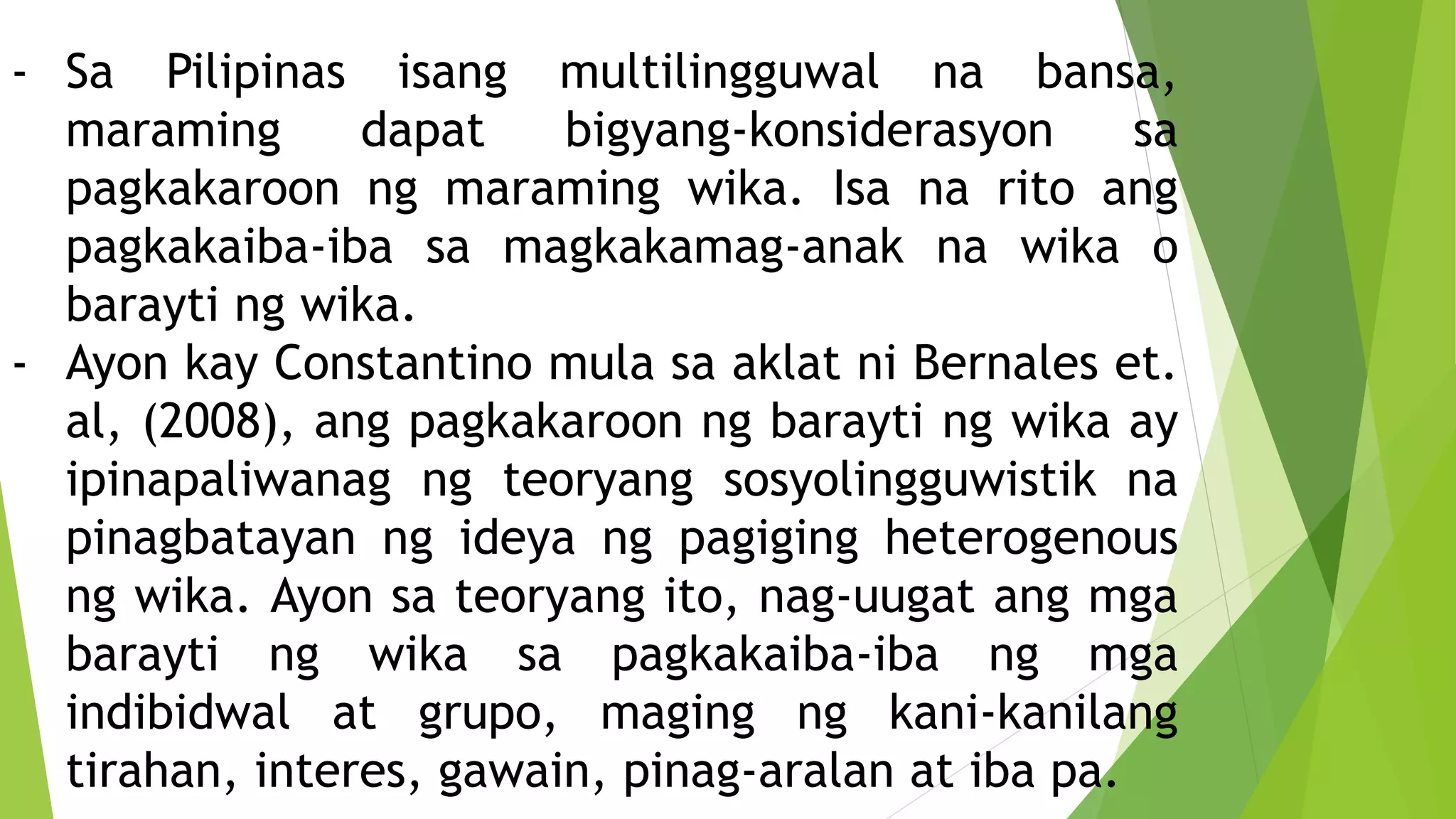KONSEPTONG PANGWIKA : BILINGGUWAL, MULTILINGGUWAL AT BARAYTI /REGISTER ...