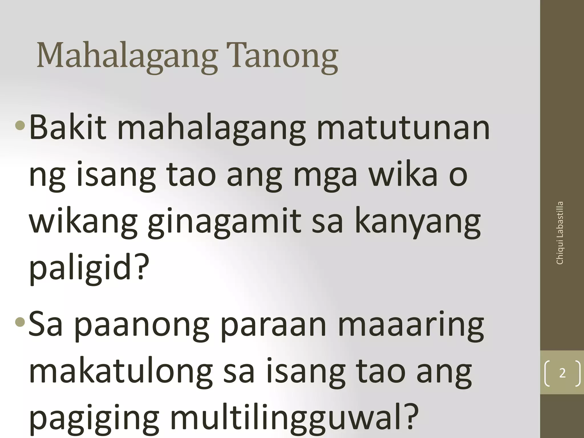 Bilingguwal aat multilingguwal - BILINGGWALISMO at MULTILINGGWALISMO ...