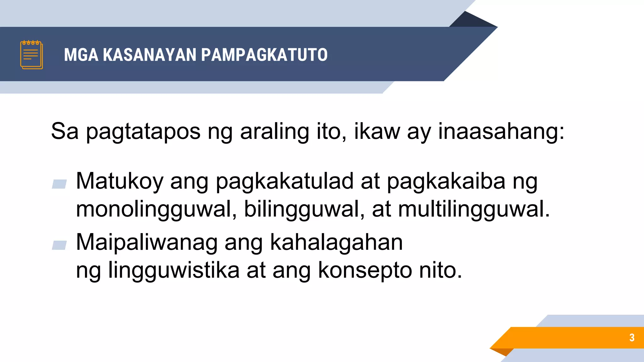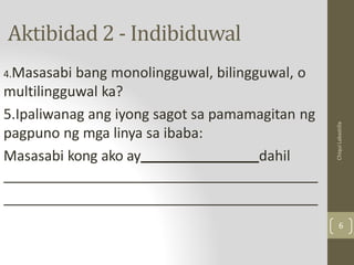 Modyul 1: Monolingguwalismo, Bilingguwalismo, Multilingguwalismo at ...