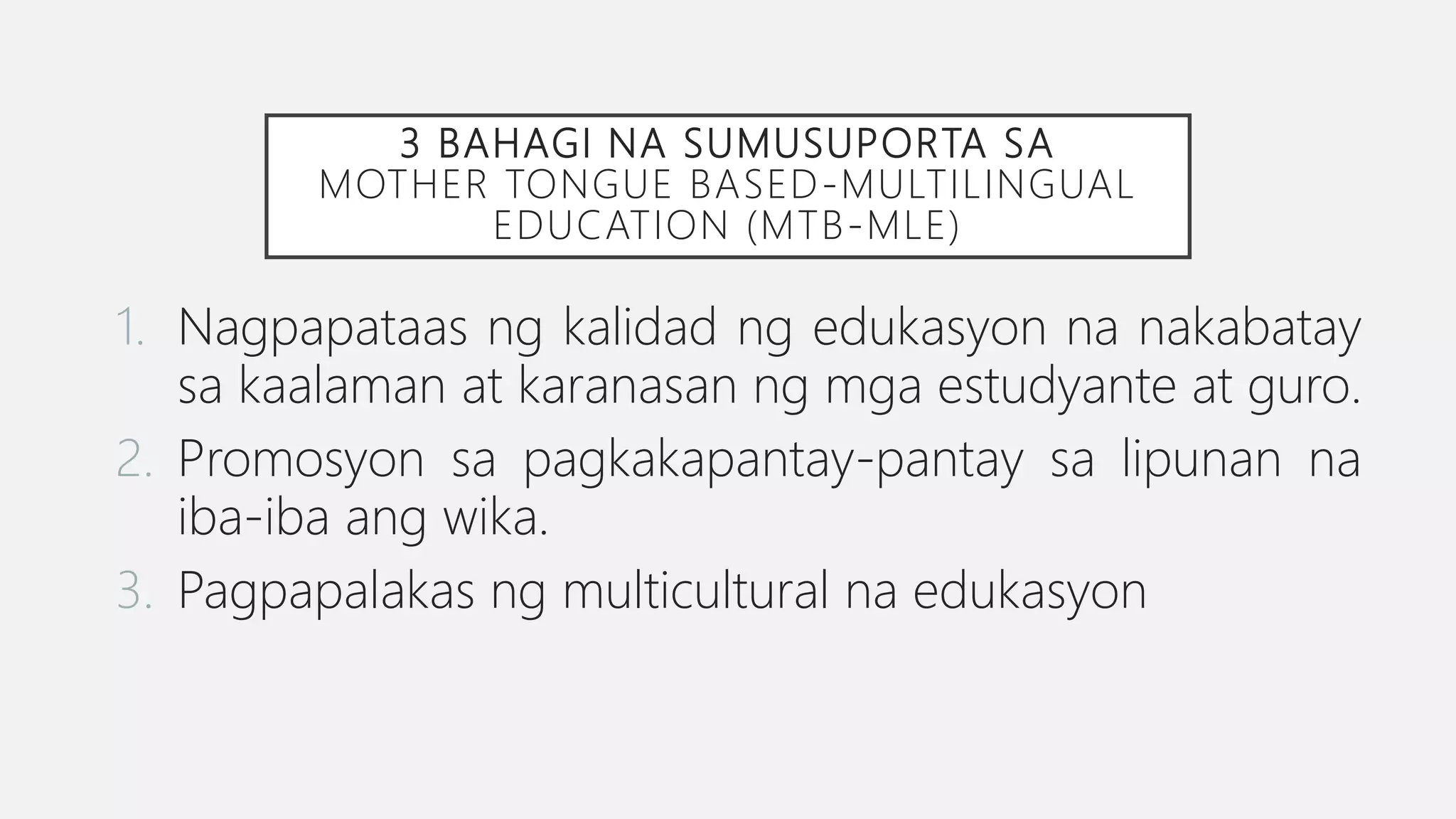ANG EDUKASYONG BILINGGUWAL NG 1974 - MULTILINGGUWAL NA EDUKASYON - Sta ...