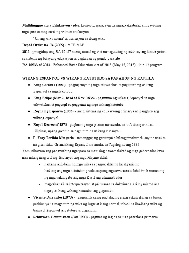 Yunit 2 Filipino reviewer - FILIPINO YUNIT 2 Panimula Multilingguwal na ...