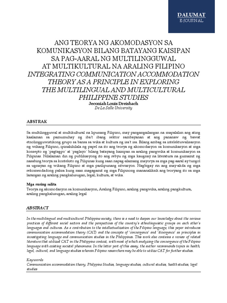 Ang Teorya NG Akomodasyon Sa Komunikasyon Bilang Batayang Kaisipan Sa ...
