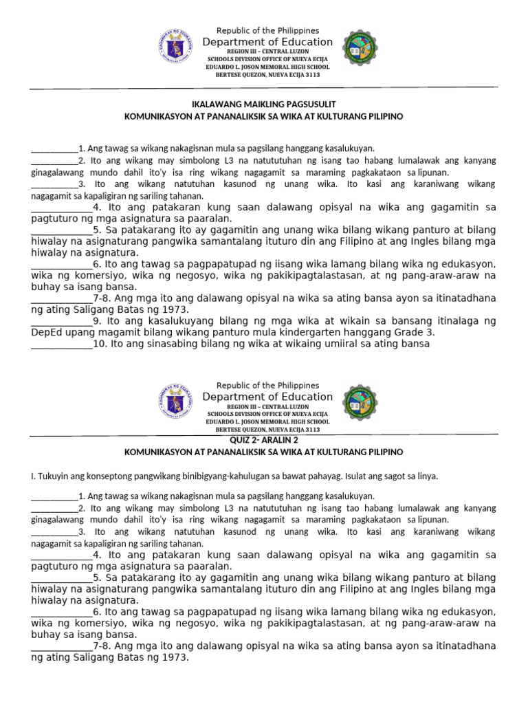 2 Multilingguwal Multikultual ang Pilipinas - Kagawaran ng Edukasyon ...