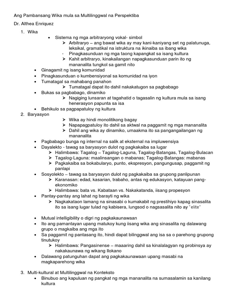 Ang Pambansang Wika Mula Sa Multilinggwal Na Perspektiba Notes | PDF