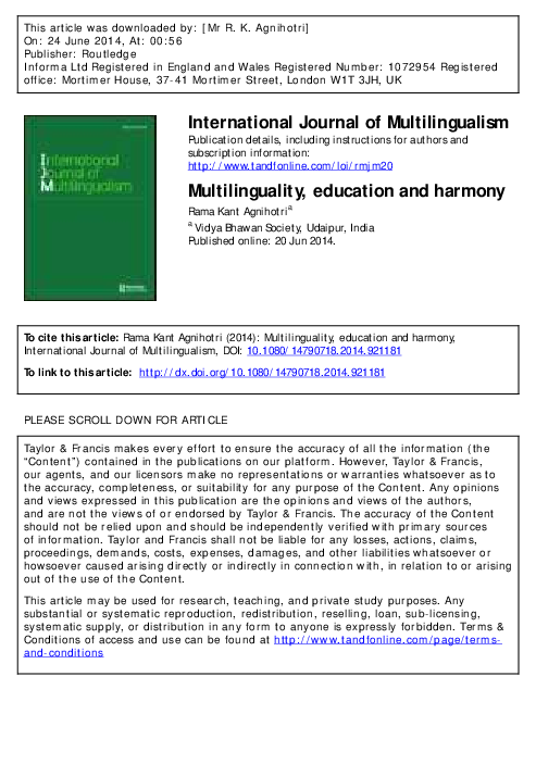 (PDF) Multilinguality, education and harmony