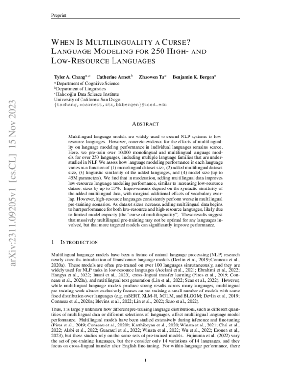 (PDF) When Is Multilinguality a Curse? Language Modeling for 250 High ...