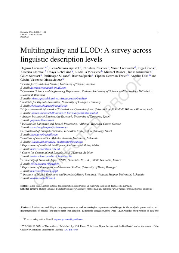 (PDF) Multilinguality and LLOD: A survey across linguistic description ...