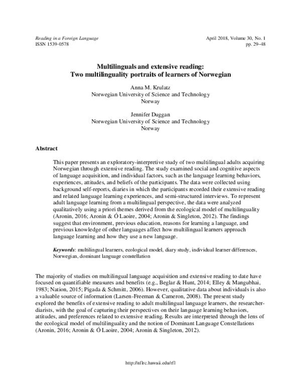 (PDF) Multilinguals and Extensive Reading: Two Multilinguality ...
