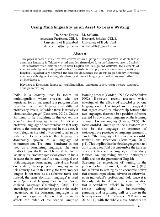 (PDF) Using Multilinguality as an Asset to Learn Writing