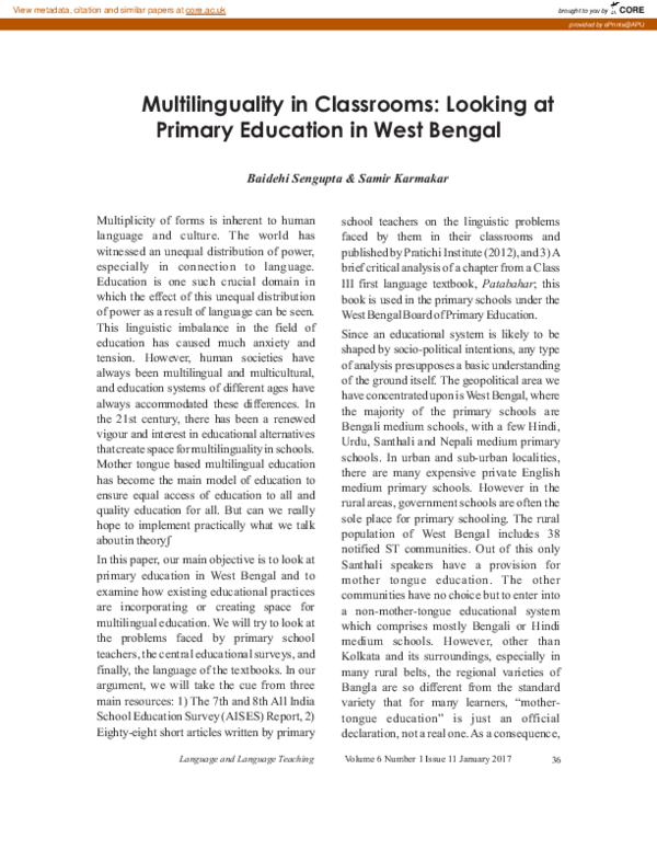 (PDF) Multilinguality in classrooms: looking at primary education in ...