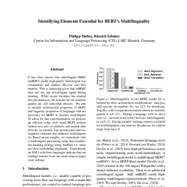Identifying Elements Essential for BERT’s Multilinguality - ACL Anthology