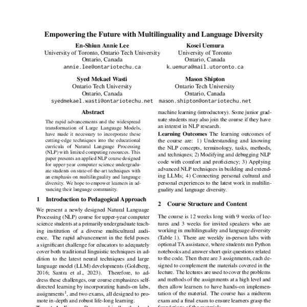 Empowering the Future with Multilinguality and Language Diversity - ACL ...