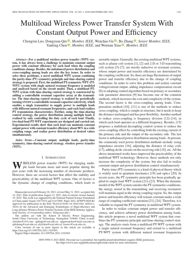 Multiload Wireless Power Transfer System With Constant Output Power and ...
