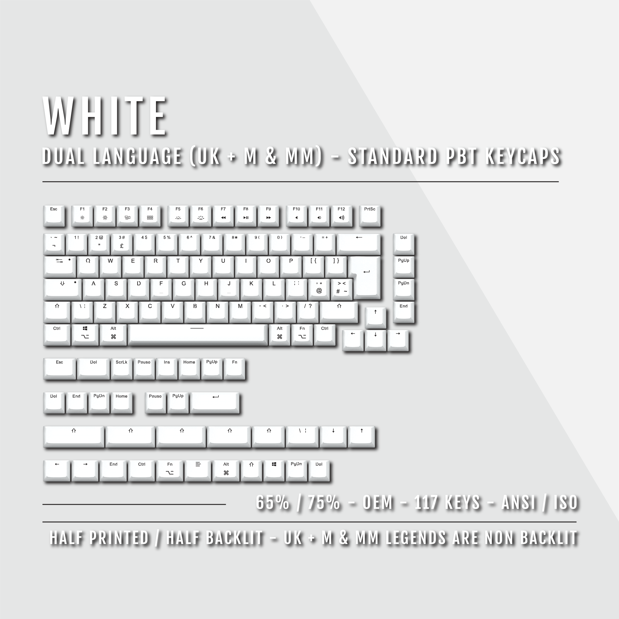 UK White PBT Mac & Multimedia Keycaps - 65/75% Sizes - Dual Language K ...