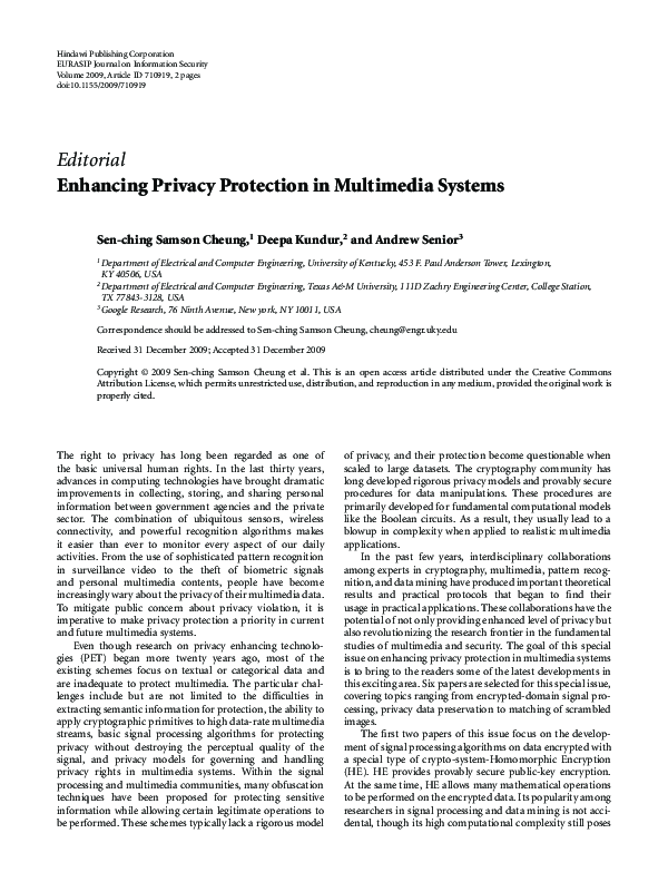 (PDF) Enhancing Privacy Protection in Multimedia Systems