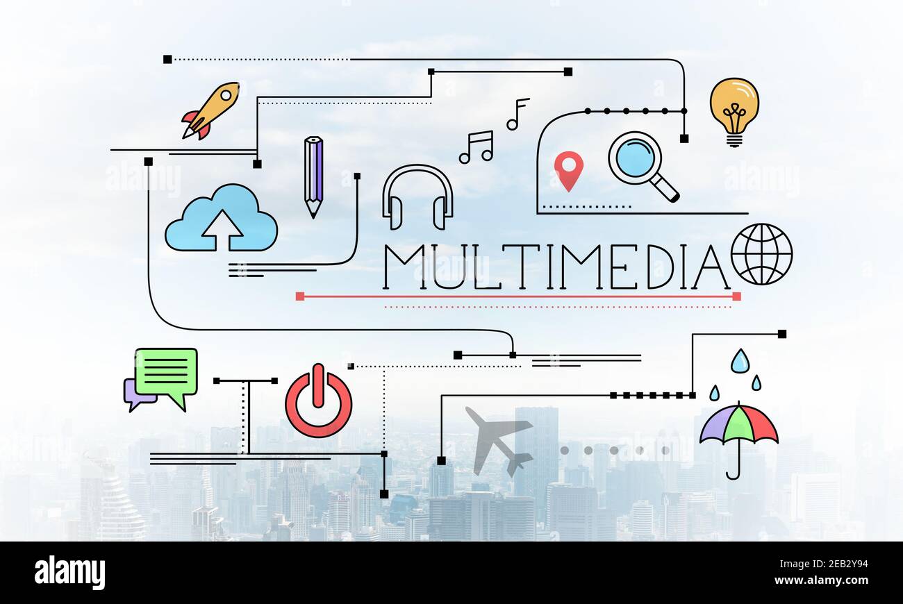 Multimedia content linear sketch with media signs Stock Photo - Alamy