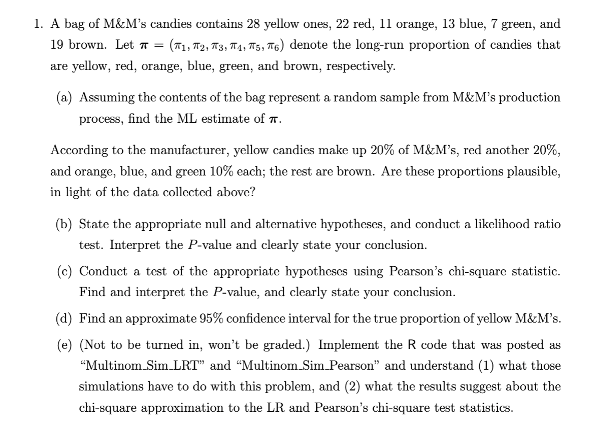 Solved A bag of M&M’s candies contains 28 yellow ones, 22 | Chegg.com