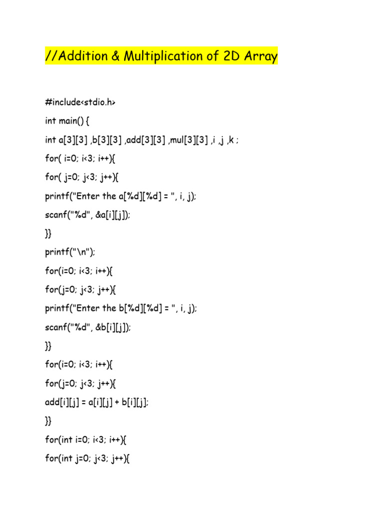Program of 2D Array of matrix multiplication and addition using C++ ...