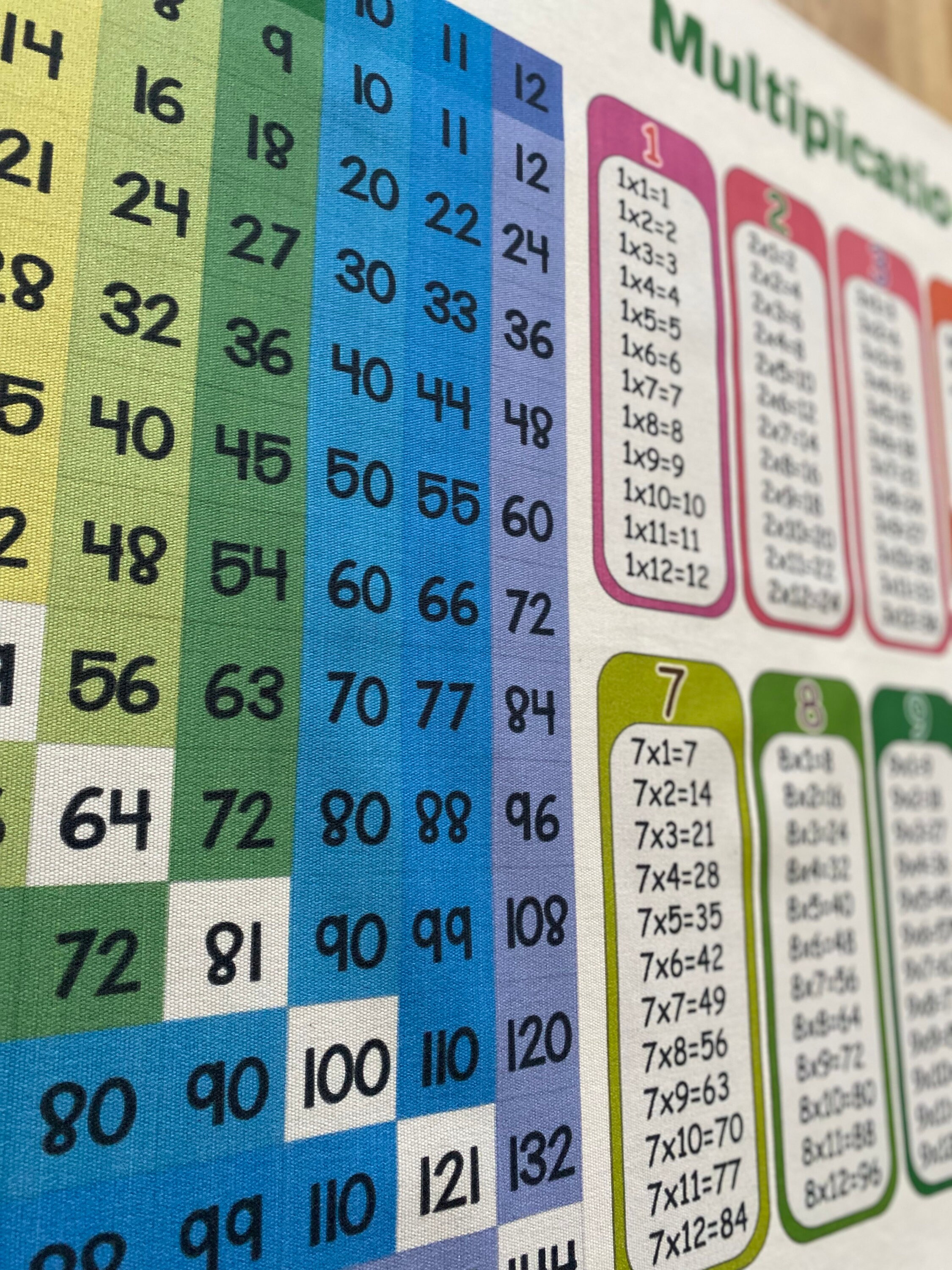 Multiplication Table Print, Colorful Math Chart, Times Table Classroom ...