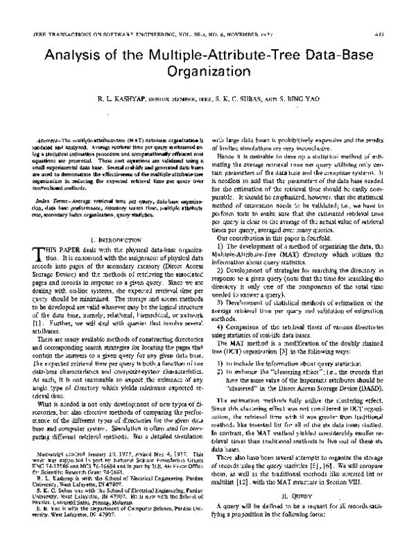 (PDF) Analysis of the Multiple-Attribute-Tree Data-Base Organization